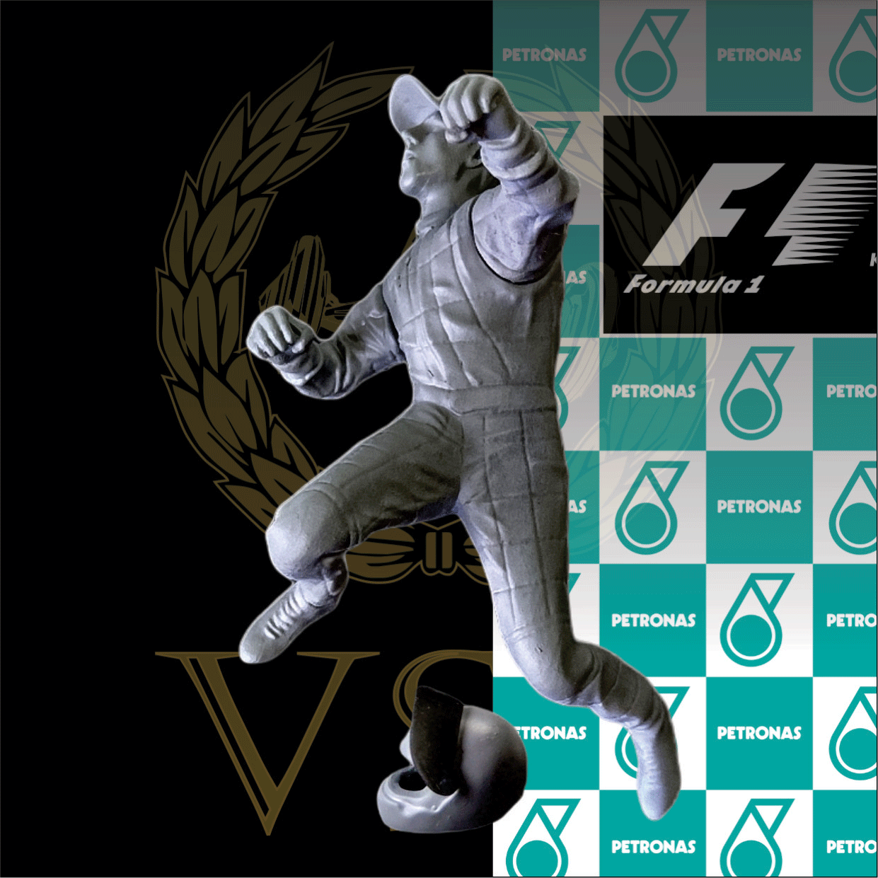 Figura MICHAEL SCHUMACHER 1/32 ; 1/24 ; 1/20 ó 1/18 realizada en resina, sin pintar ni decorar. Casco con visera basculante, realizado en resina, incluído. Incluye archivo para imprimir el fondo de Petronas del podio.
