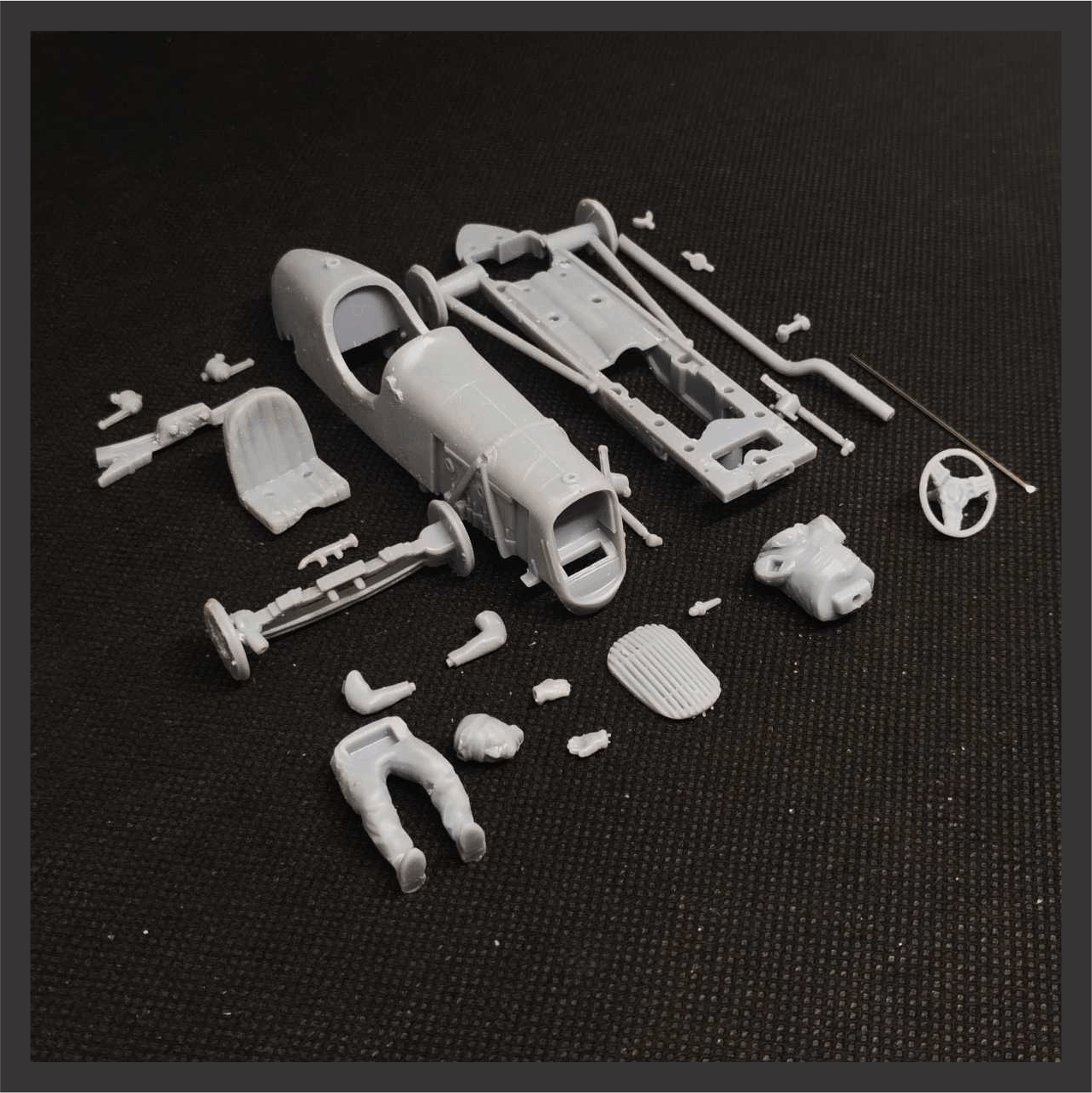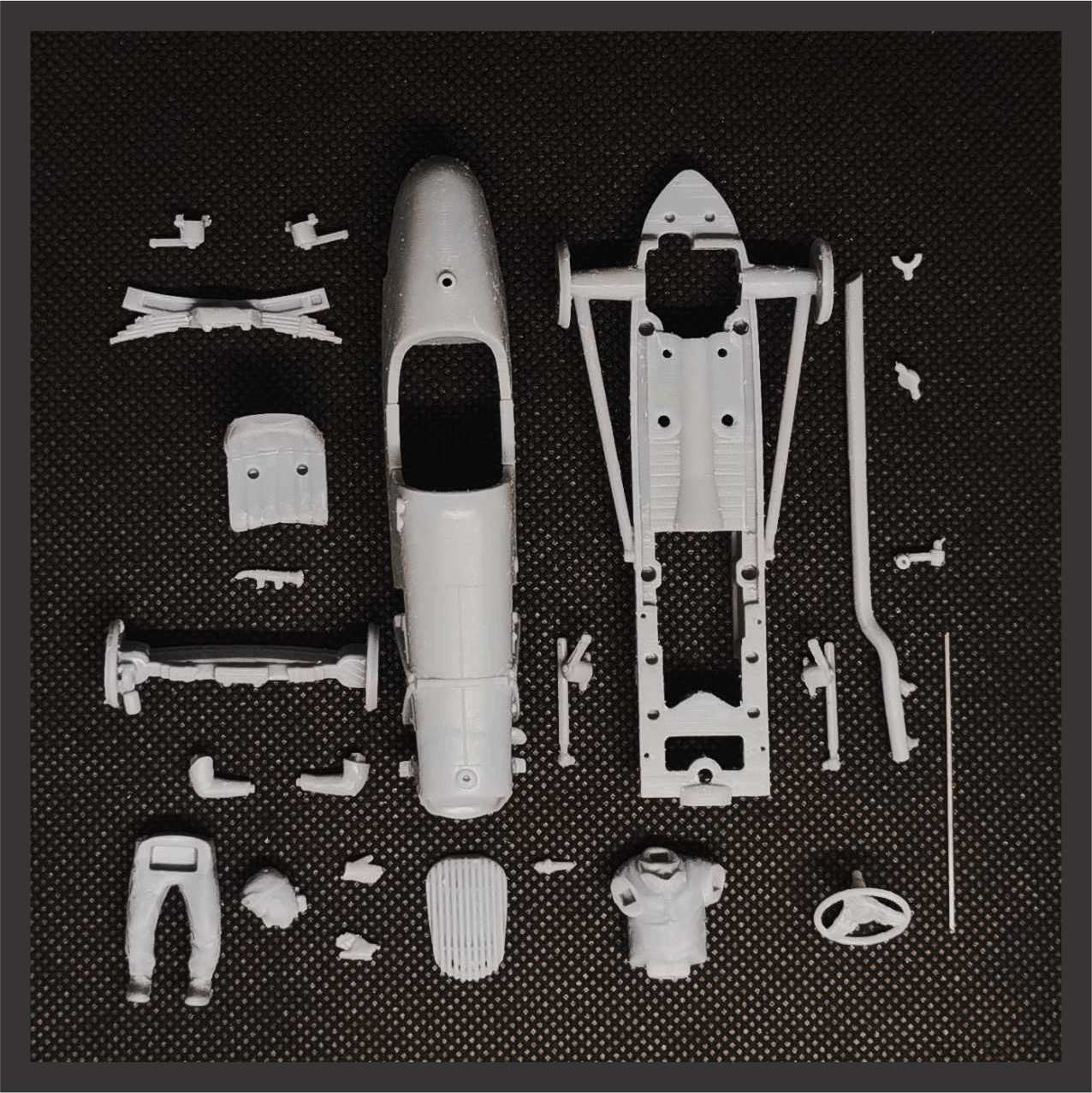 KIT DE CUERPO DE CARROCERÍA 1/24 COMPLETO – SIN PINTAR – INCLUYE FIGURA DEL PILOTO Y CALCAS REALIZADO EN RESINA DE ALTA DENSIDAD, APTA PARA GOLPES Y CAÍDAS Y CON EXCELENTE PROPIEDADES DE TORSIÓN