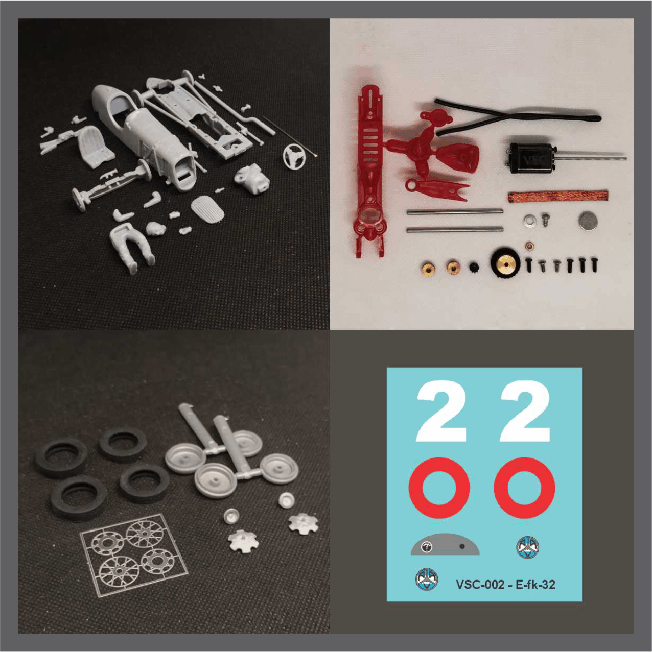 KIT 1/32 COMPLETO – SIN PINTAR – INCLUYE FIGURA DEL PILOTO Y CALCAS – CHASIS Y MICROMOTOR 6-12V DE 20.000 RPM REALIZADO EN RESINA DE ALTA DENSIDAD, APTA PARA GOLPES Y CAÍDAS Y CON EXCELENTE PROPIEDADES DE TORSIÓN. RUEDAS DE ALAMBRE DE 3 PARTES, INYECTADAS EN PP