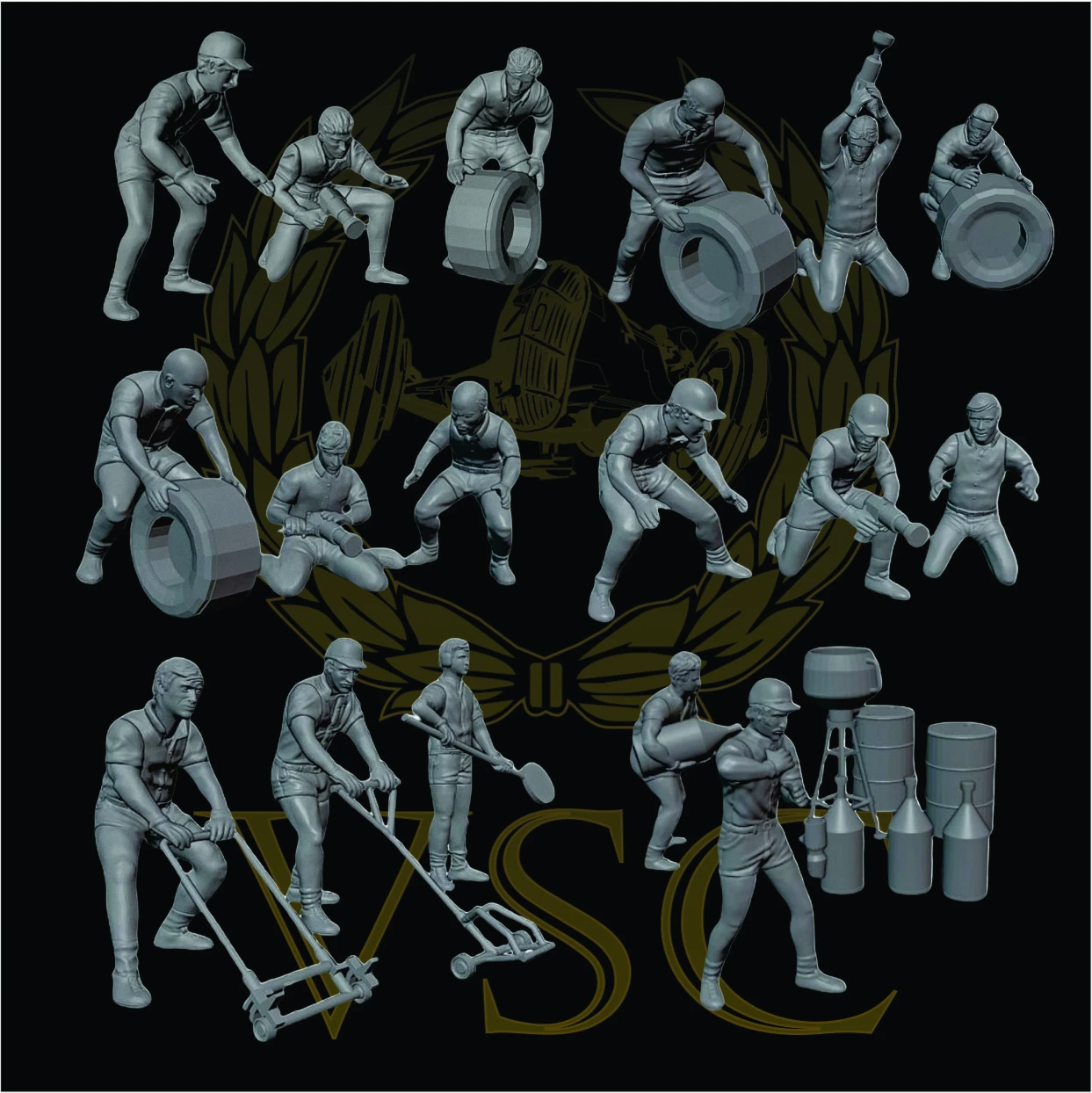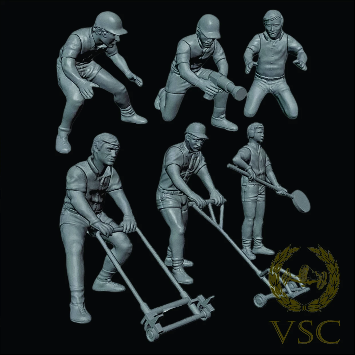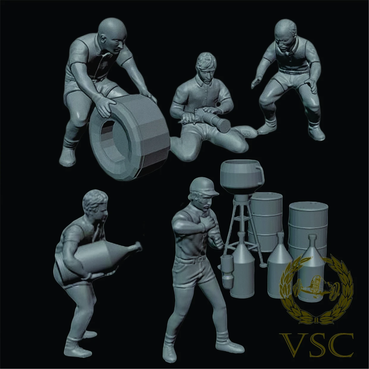 set de figuras 1/64 realizadas en resina, sin pintar ni decorar.