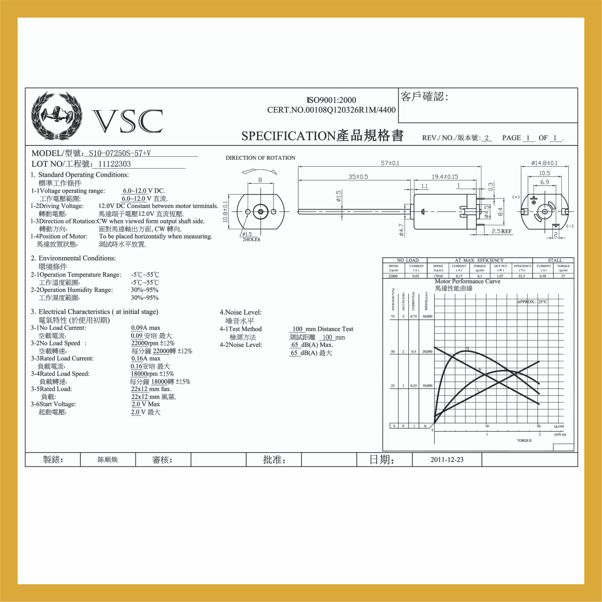 VSC-M1250 Micromotor 12v 20.000rpm