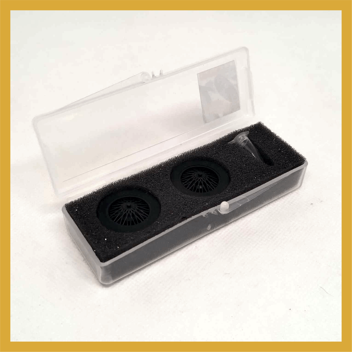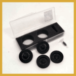para coches con rodamientos de diferente tamaño. Utilizable en coches de la década del 30 al 70 . Diám ruedas montadas: 20,9mm del. + 22,9 mm tras. Eje 2 mm/ – adaptable a 3/32 /