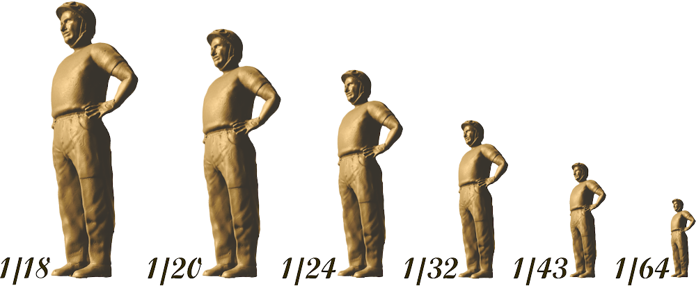Trabajamos nuestra propia línea de figuras y las calcas correspondientes, las que fabricamos en diferentes escalas. Dentro de los standard vamos desde 1/64 a 1/18, pero podemos producirlas en otras a pedido: 1/12 ; 1/10 y 1/6 no son impedimento para nuestras metodologías de producción. También fabricamos , con archivos propios, las reproducciones de las cajas Matchbox – Lesney de las series1-75 desde 1953 a 1982, para lo cual contamos además, con nuestro propio distribuidor en EEUU.-( Buzzy´s collection – Ebay )